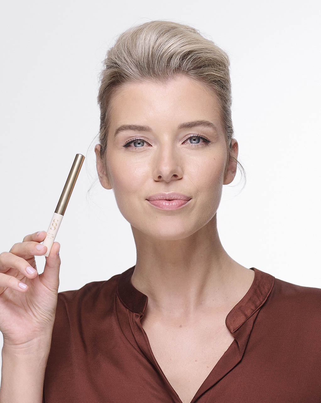Al extraer el cepillo aplicador del envase, conviene retirar el exceso sobre un pañuelo de papel. Nunca debe retirarse el exceso en el orificio de salida del pincel para evitar la aparición de grumos en el producto.