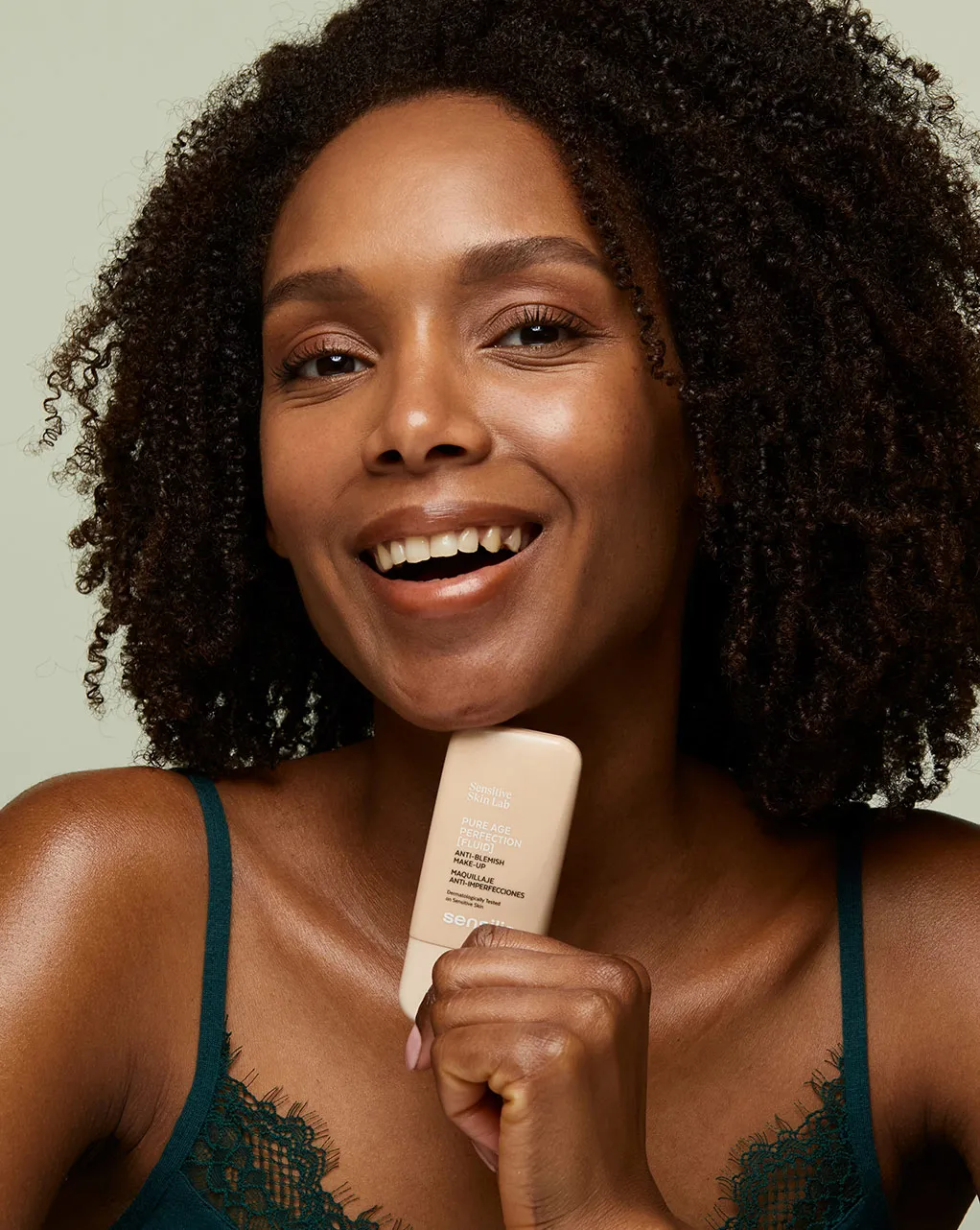 Maquillaje dermatológico fluido de alta cobertura y larga duración (6-8H) que ayuda a controlar el sebo, cubrir y tratar las imperfecciones e hidratar y reparar la función barrera. Acabado mate.