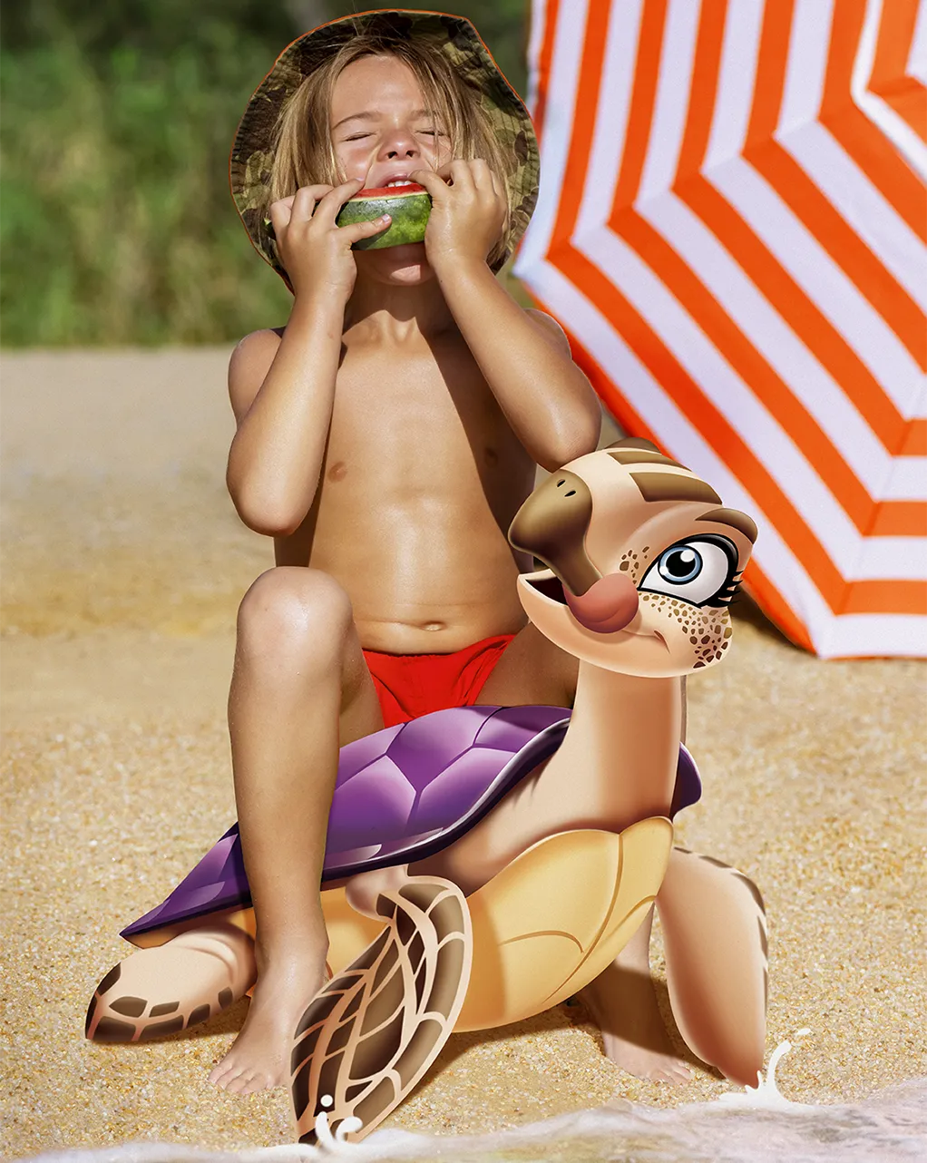 Muy alta protección infantil de base acuosa y rápida absorción que proporciona una sensación calmante. De color violeta con acabado invisible no graso. No se pega a la arena.